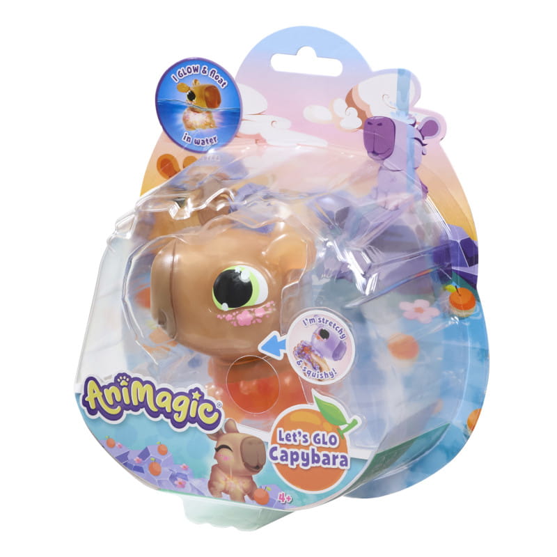 Animagic Let’s Glo Capybara Brown – stwórz magiczną atmosferę zabawy dzięki tej mięciutkiej, brązowej kapibarze, która świeci w wodzie, miękko się ugniata, a w jej brzuszku czeka ukryta niespodzianka sensoryczna!